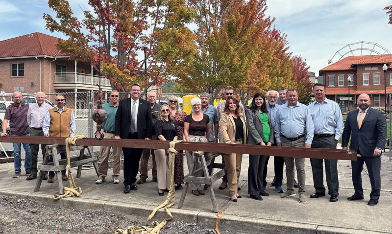 ELKINS — The Randolph County Development Authority hosted a special “beam-setting” ceremony on Tuesday for the new Event and Conference Center that is being constructed behind the Elkins Railyard Depot.