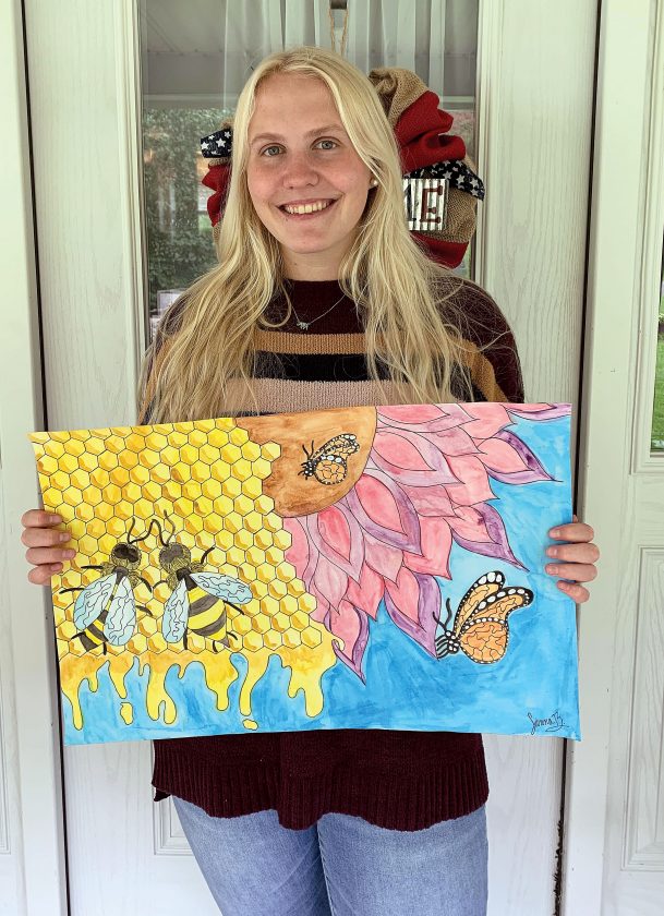 - Sienna Bircher, of Arbovale, took second place for her tribute to an endangered species with her entry entitled ‘Bee Sweet.’ The contest was open to all high school students in Randolph, Tucker, Upshur, Pocahontas, Barbour and Nicholas counties in response to the COVID-19 shutdowns to allow students to showcase their efforts to the public.