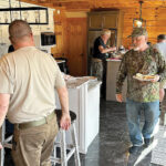 The participants enjoy a meal in the lodge at the Mountain Meadow Hunting Preserve in Southern West Virginia.