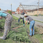 - Members work in the Darden Mill Pollinator Garden, Randolph County