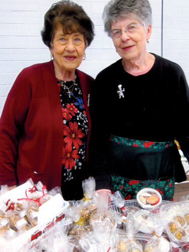 The Inter-Mountain photos by Shannon Bennett Campbell JoAnn DeMotto Yeager and Corina Ann (Pongie) Belan stay busy at the Davis & Elkins College Gym, where at a recent Art and Craft Show they occupied 12 tables, from one wall of the gym to the other, all filled with chocolate candies, filled eggs, cookies and cakes.