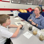 - Submitted photos Arthur Godwin, left, learns about soil testing Wednesday during the first STEAM Night at Tygarts Valley Middle/High School. He is shown here with Brittany Leggett, an agriculture agent for West Virginia University Extension.
