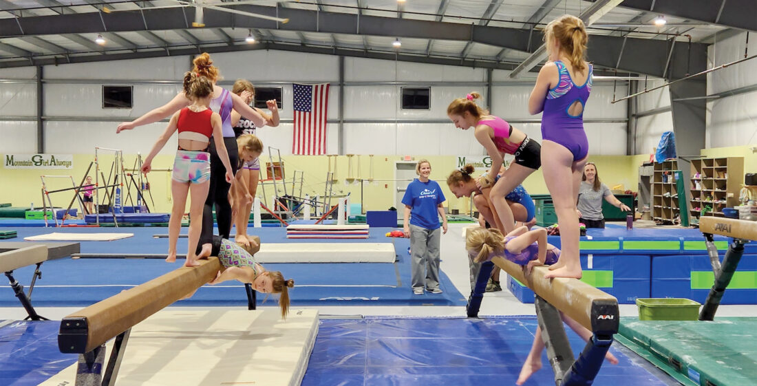 Submitted photos Gymnasts practice on the balance beam at Mountain Gymnastics Academy. Mountain Gymnastics Academy founders Gail and Michael Hayes are donating the gym in its entirety to Friends of MGA.