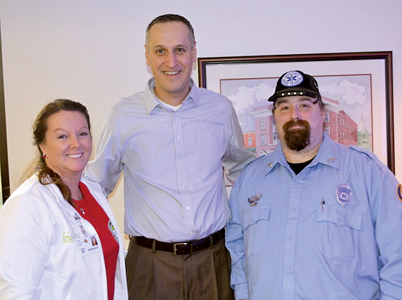 Submitted photos Pictured above are Cardiac Rehabilitation Nurse Manager Kristi Gannon, Cardiologist Dr. Wissam Gharib and Lewis County Emergency Squad EMT Chris Starkey during the Mon Health Stonewall Jackson Memorial Hospital Healthy Heart Fair on Feb. 12.