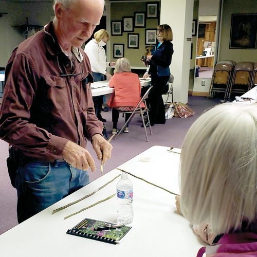 Submitted photo David Proudfoot assists garden club members with preparing apple tree grafts at their October meeting.