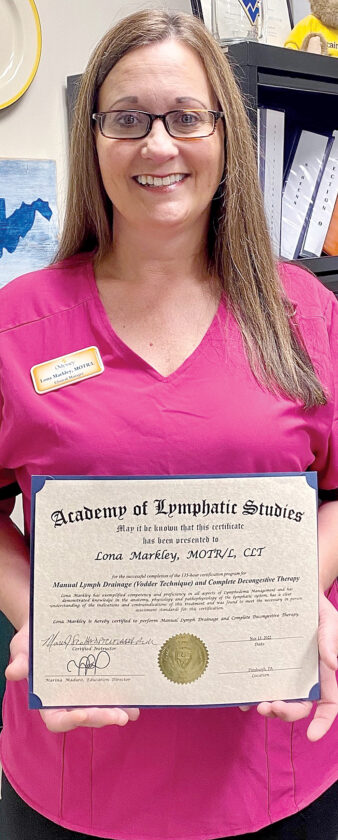 Submitted photo ERCC’s rehab clinical manager and occupational therapist, Lona Markley, recently obtained her certification in lymphedema treatment.