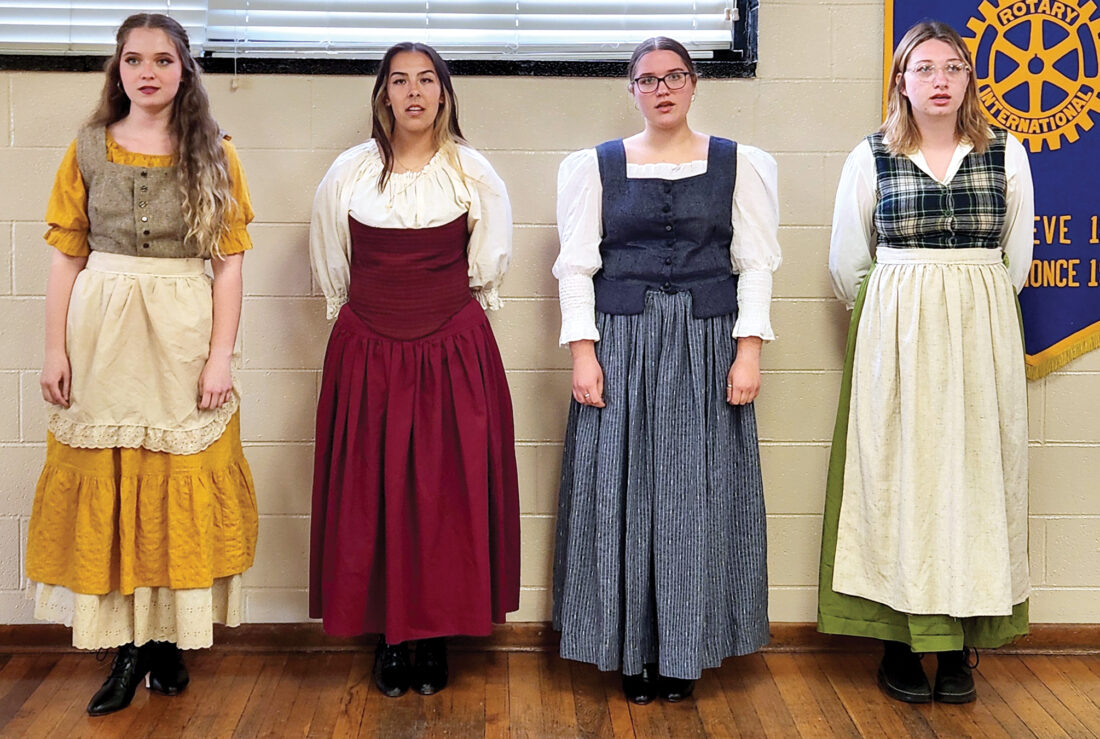 Submitted photo From left, Davis & Elkins College students and members of the cast of ‘Lizzie: The Musical’ Nicole Schumacher (Alice Russell), Trinity Fleming (Lizzie Borden), Sidney Apanowicz (Emma Borden) and Marissa Mallow (Bridget Sullivan) presented ‘The House of Borden’ to the Rotary Club of Elkins.
