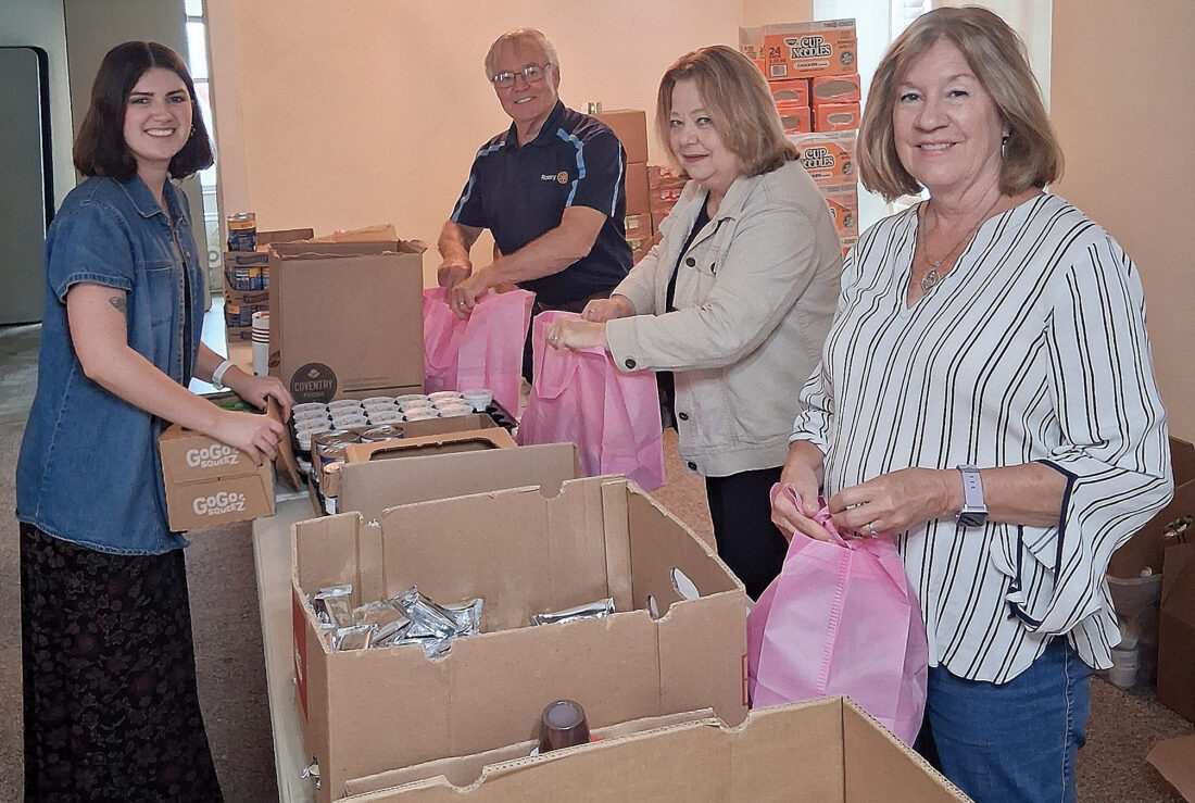 Submitted photo Rotarians packing food for the Upshur Parish House’s ‘Break Bag’ program include, from left, Kathy McMurray, Lisa Wharton, Keith Buchanan and Caroline Fulks.