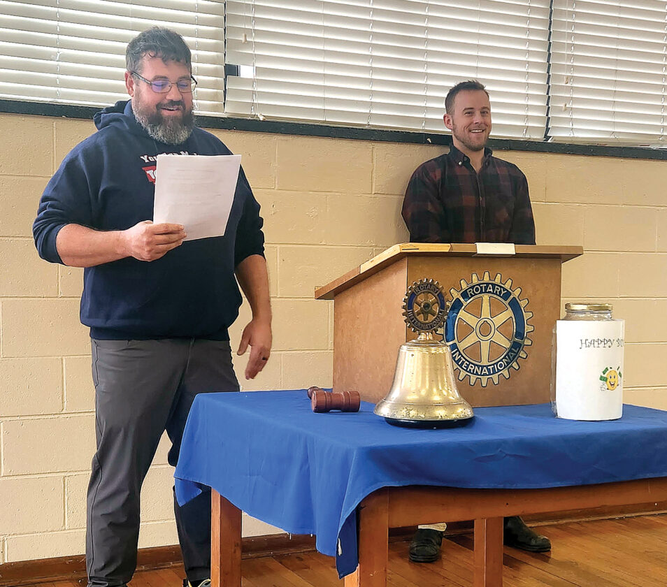 Submitted photo Chris Lee, left, and Owen Peet, right, spoke with the Rotary Club of Elkins about the Randolph County Toys for Tots program.
