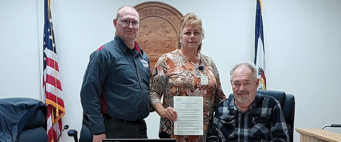 Submitted photo WV Caring Hospice Care Volunteer Cordinator Nancy K Dotson presented the National Hospice Month Proclamation to the Randolph County Commission for their consideration and approval. Commissioners approved the proclamation as presented. WV Caring Hospice Care provides specific pt services to those with an illness requiring end of life care. Their Regional Inpatient Center is located on Diamond Street, in Elkins and provides care to patients throughout the area. Volunteers assist at the center with answering phones, greeting visitors, picking up meals for the center and sitting with patients providing a presence. If you feel led to assist in such activities, contact Nancy at ndotson@wvcaring.rg or 304-614-6223.