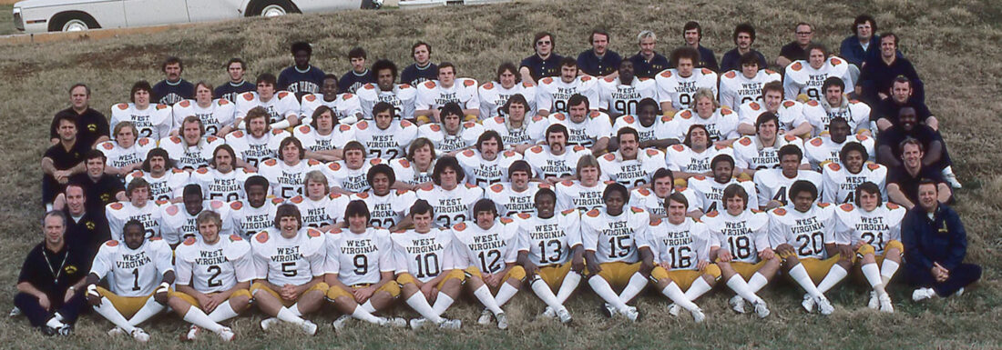 The 1975 WVU football team recently gathered to celebrate their victory in the Peach Bowl.