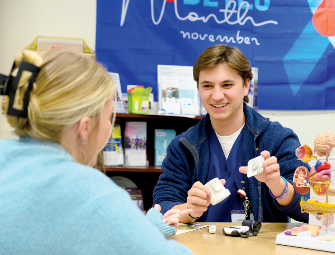 WVU photos Thanks to a new partnership between WVU and Johns Hopkins University launching for Fall 2026, nursing students like Ryan Alisauckas, shown here providing diabetes education, can explore a new community nursing track called “Inside Outside” that will help them make a difference in their patients’ lives.