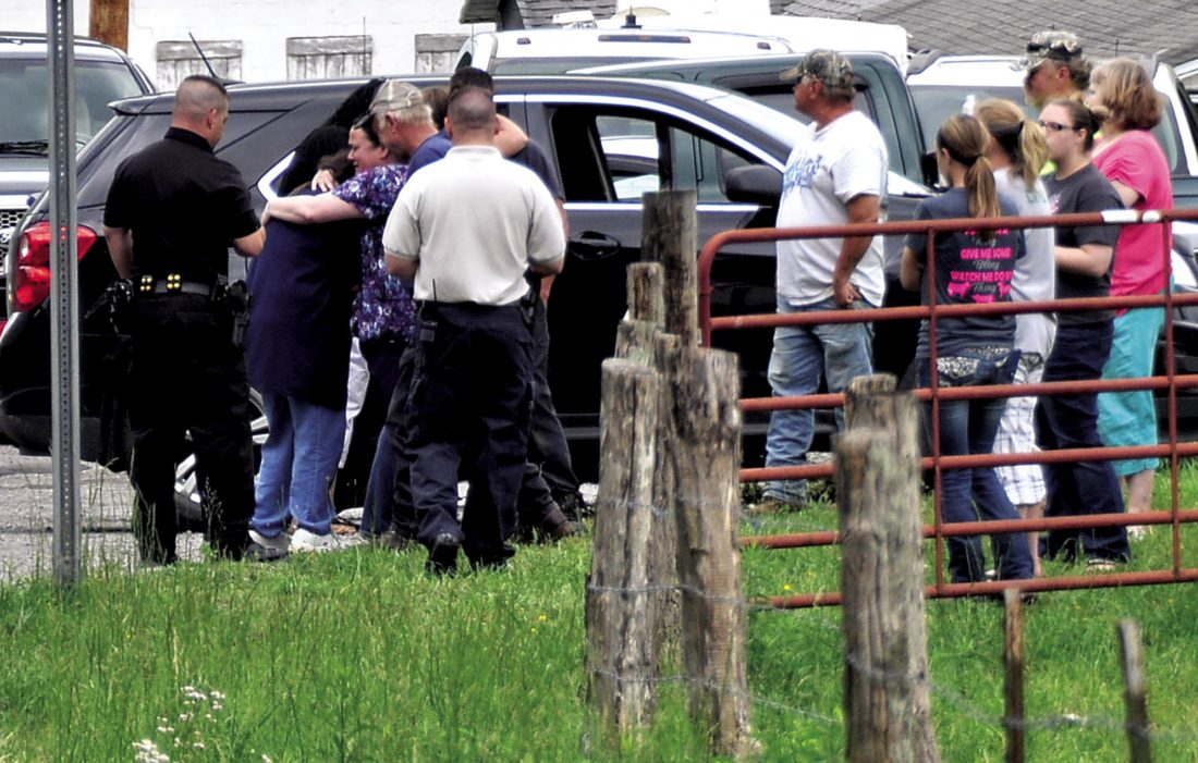 The Inter-Mountain photos by Tim MacVean Family and friends of those affected by Wednesday’s explosion console each other near the scene.
