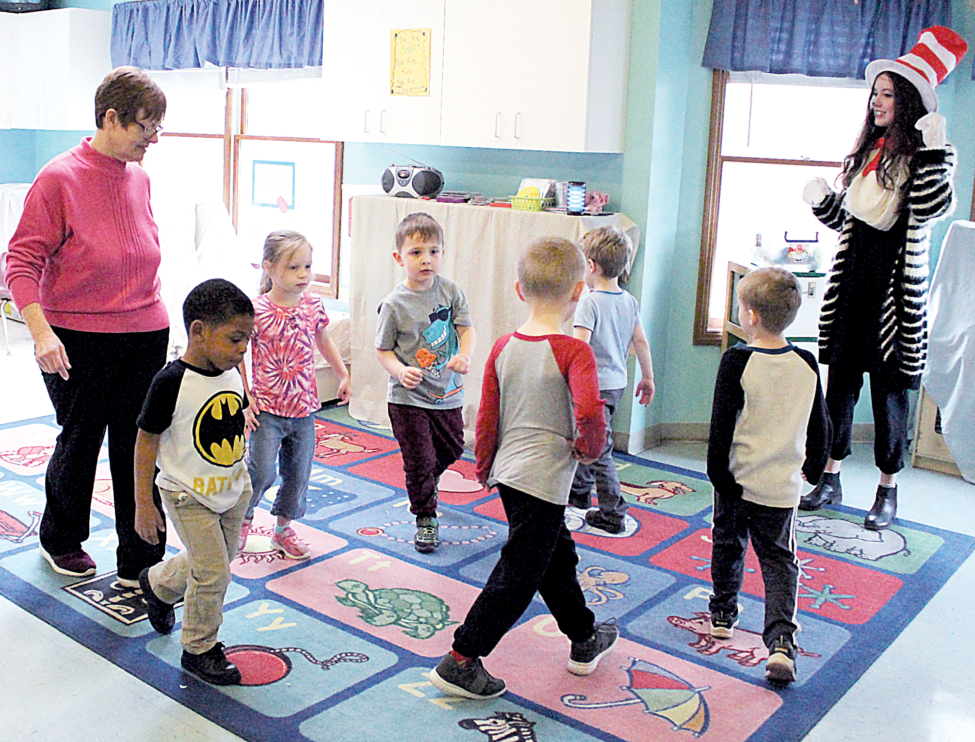 The Inter-Mountain photo by Brooke Binns Pre-k students at Youth Health Service in Elkins participate in activities involving Dr. Seuss books this week with The Cat in the Hat, portrayed by Kali Elza, AmeriCorp VISTA for YHS.