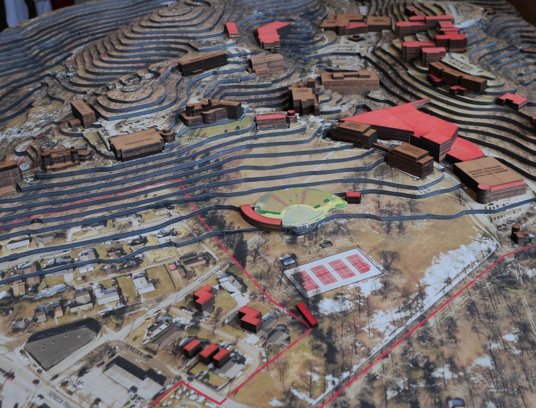 Submitted photo An interactive 3D topographic map shows the Davis & Elkins College campus. Movable parts offer a look of how the campus could look with various upgrades and redesigns.