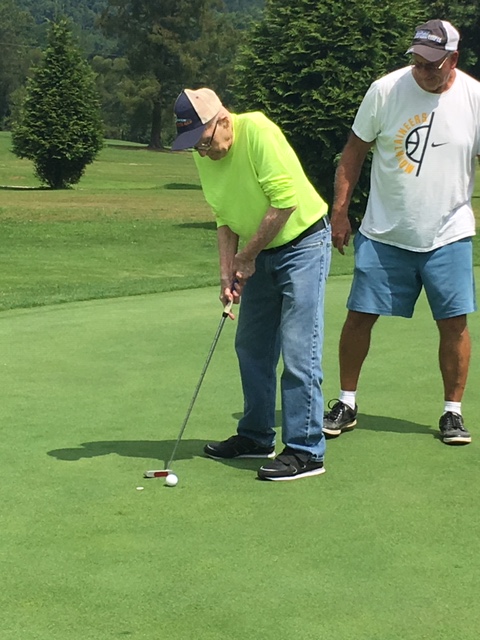 Submitted photo George Hubbard prepares to putt as long-time friend Dale Ruckle eyes the shot.