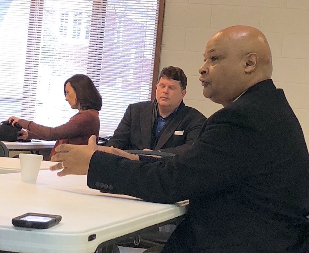 WV Press photo by Crystal Good Pastor Mathew J. Watts leads a discussion on the West Virginia Legislature’s proposed Senate Bill 723 — ‘Reducing School Suspensions.’