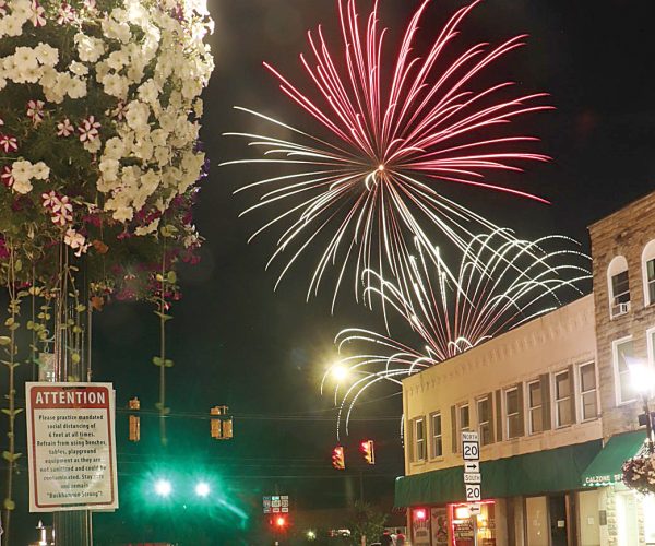 Fireworks light up the skies over West Main Street in Buckhannon Sunday night as the City of Buckhannon offered a fireworks show in honor of Independence Day. Residents were encouraged to watch from their cars and practice social distancing to comply with COVID-19 pandemic guidelines.