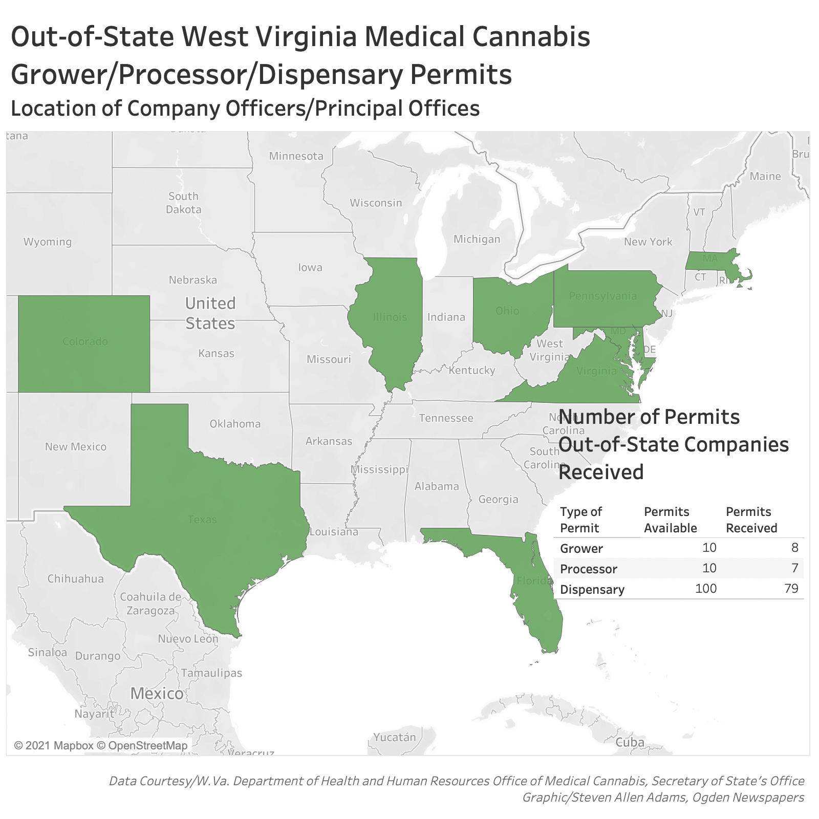 CHARLESTON — Once again, out-of-state business entities and owners took the majority of dispensary and processor permits for West Virginia’s long-awaited medical cannabis program.