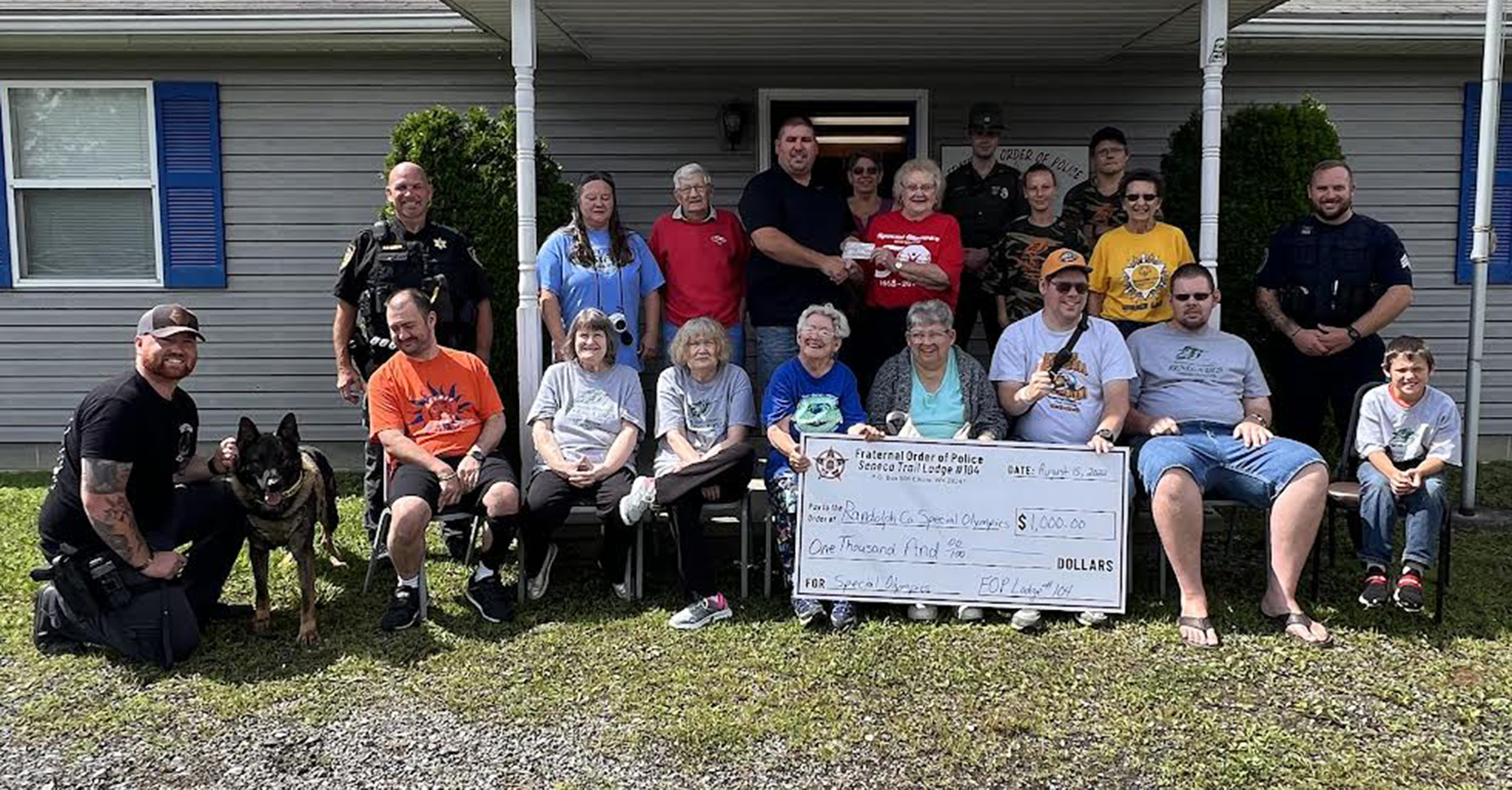 The Seneca Trail Lodge 104 of the Fraternal Order of Police donated $1,000 to the Randolph County Special Olympics. The organization will also be sponsoring a 5-k walk run to support the Special Olympics on Sept. 24. Those attending the presentation from Randolph County Special Olympics were, in no particular order: Beverly Wine (secretary), Birdie Stalnaker, Charlie Wine, Linda Teter, Judy Waybright, Marilyn Westfall (coach), Bobbie Hornback, Diane Hoover (coach), Dan Hoover, Liz Wymer (county coordinator), Peggy McLean, Sammy McLean, and Sterling McLean. Those representing the FOP include: FOP President David VanMeter (deputy sheriff), Randolph County Sheriff Rob Elbon, RCSO Deputy Tyler Knotts and K-9 Hacker, West Virginia State Police Corporal D.T. Stallings, and Elkins Police Department Sgt. Brandon Tice.