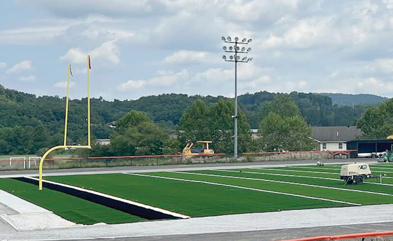 Straw Construction Company workers began laying the new turf down on the Elkins High School football field Friday. The field will be used for both soccer and football contests once its completed. The first EHS home football game this season is Sept. 9, hosting Lewis County.