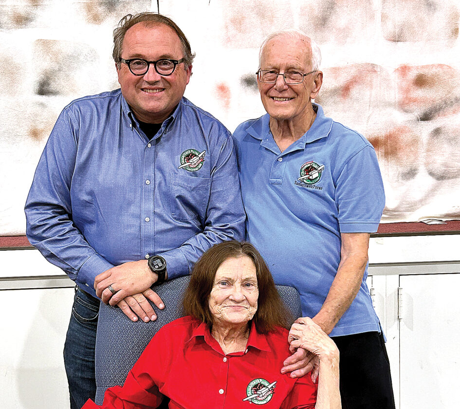 Submitted photo Operation Christmas Child International spokesperson Mary Damron, center, sits with OCC Regional Manager Mike Brummitt, left, and local OCC Project Leader Bob Cowgill.