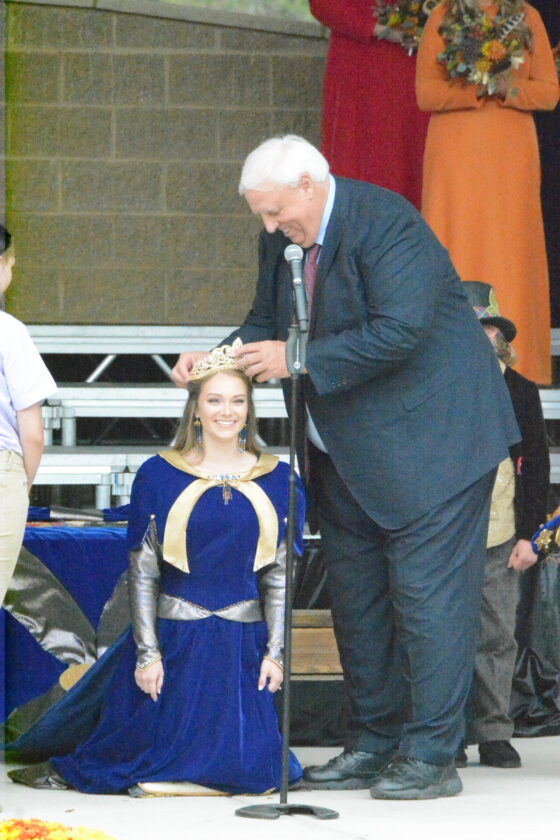 Gov. Jim Justice, a surprise participant in Friday’s coronation ceremony, placed the crown on the head of Queen Silvia LXXXV Anna Marie Ruf at the Citizens Bank of WV Amphitheatre on the campus of Davis & Elkins College.