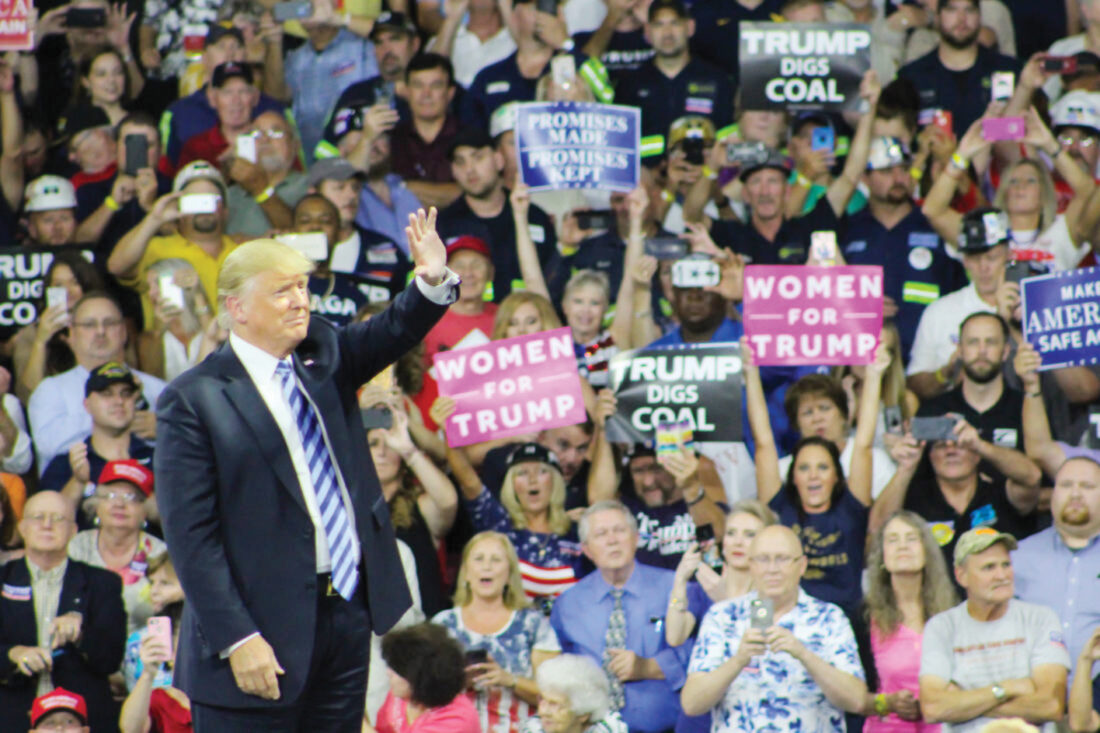 File Photo Donald Trump, a former president indicted on federal and state charges, is shown here campaigning for Patrick Morrisey’s 2018 campaign for U.S. Senate.