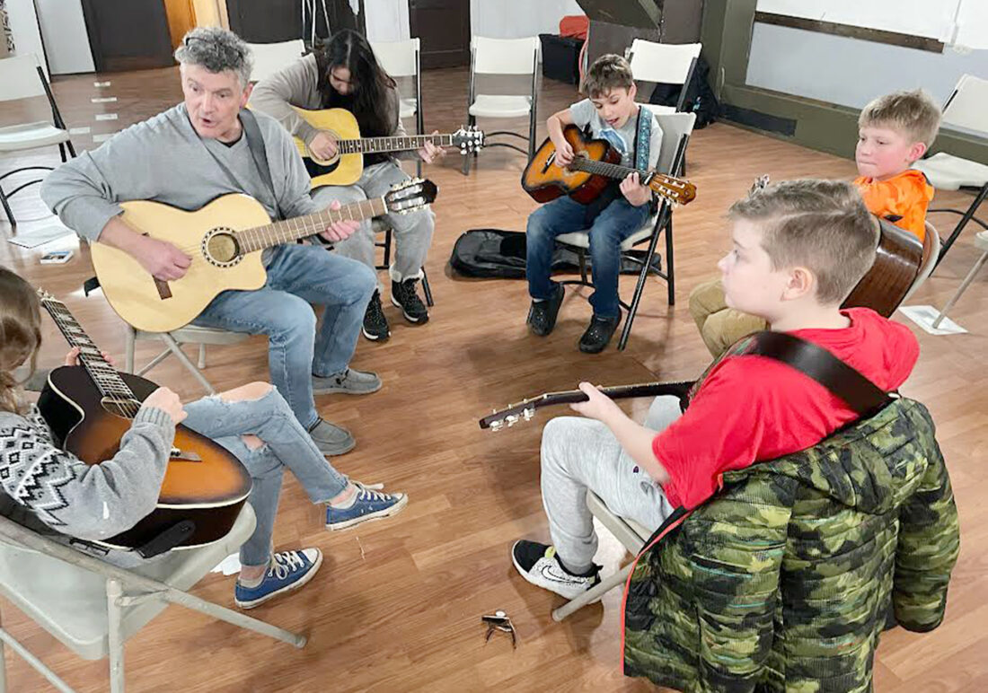 Submitted photos Seth Maynard teaches a youth strings program being offered by the Augusta Heritage Center in its new facility in downtown Elkins, the historic Wilt Building on Davis Avenue.