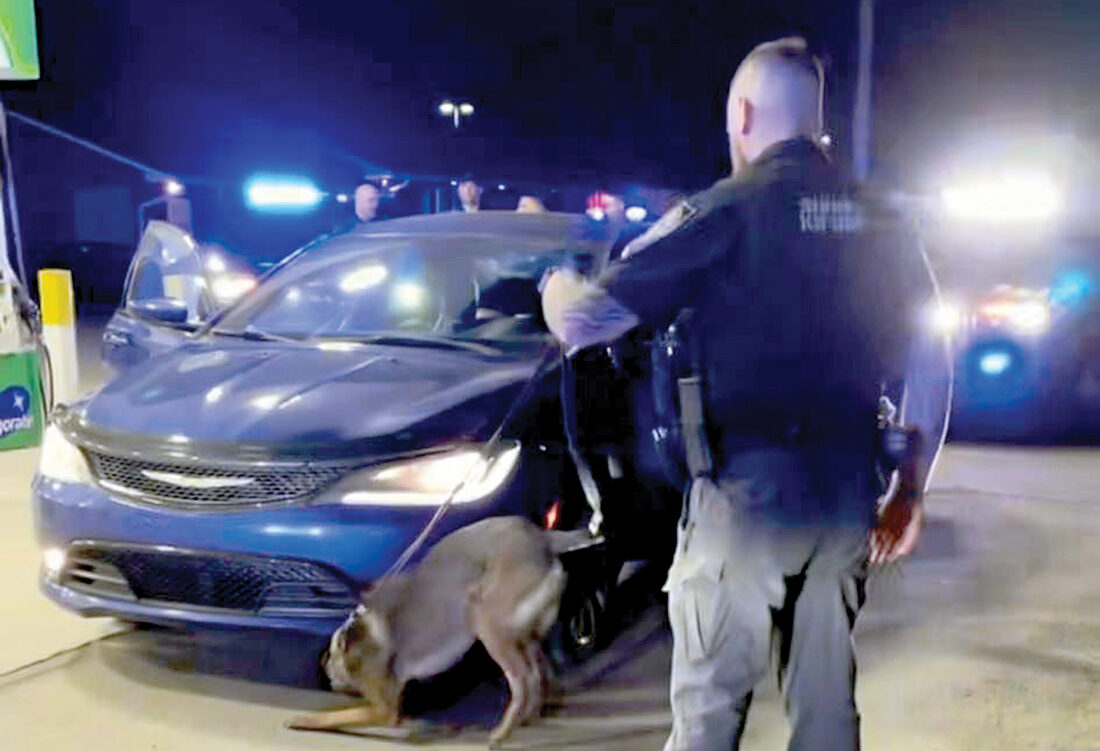 Photo courtesy of the Randolph County Sheriff’s Office Randolph County Sheriff’s Office Deputy Tyler Knotts and K9 officer Twix search a car after a traffic stop at the ParMar store on the Beverly Five Lane Friday night. RCSO deputies arrested a suspect on felony warrants during the stop.