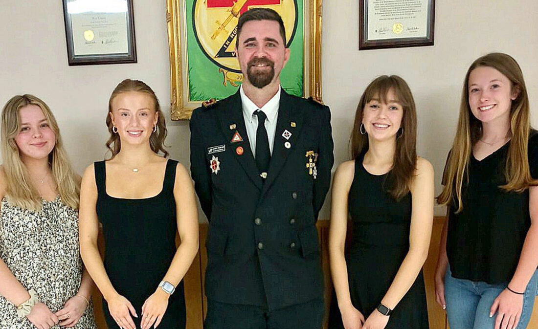 Submitted photo The Pilgrim Commandery No. 21 Knights Templar recently awarded scholarships to four high school seniors in Randolph County. Those attending the award ceremony were, from left, Abigail Arbogast (Tygart Valley High School), Lydia Wamsley (TVHS), Justin Thompson (Head of Education Committee), Amanda Cutlip (TVHS) and Lindsey Thompson (Harman School).