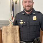 Submitted photo Lieutenant Brandon Tice with his new badge and plaque after his promotion ceremony on Aug. 15.