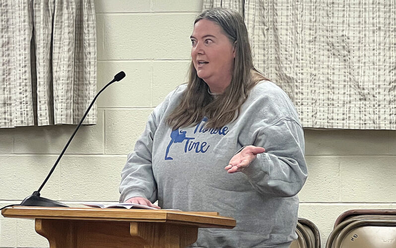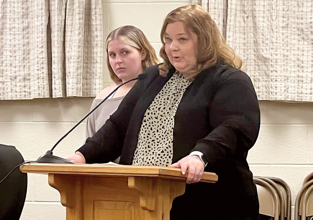 The Inter-Mountain photos by Edgar Kelley Elkins HIgh School Principal Carla Lambert speaks to the Randolph County Board of Education Tuesday night during the BOE’s regular meeting. She was joined at the podium by her daughter, Maddie, a student at EHS.