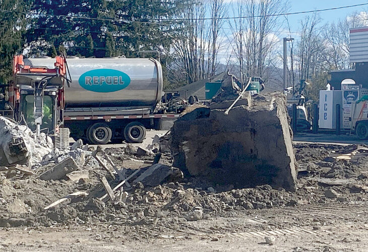The Inter-Mountain photos by Brad Johnson The Speedway gas station and convenience store on Harrison Avenue in Elkins will be closed for about a month as renovation work at the site continues, including repaving the lot and excavating the gas pumps. The lot has been gated off, as heavy equipment operators work to realize all the project’s renovation goals.