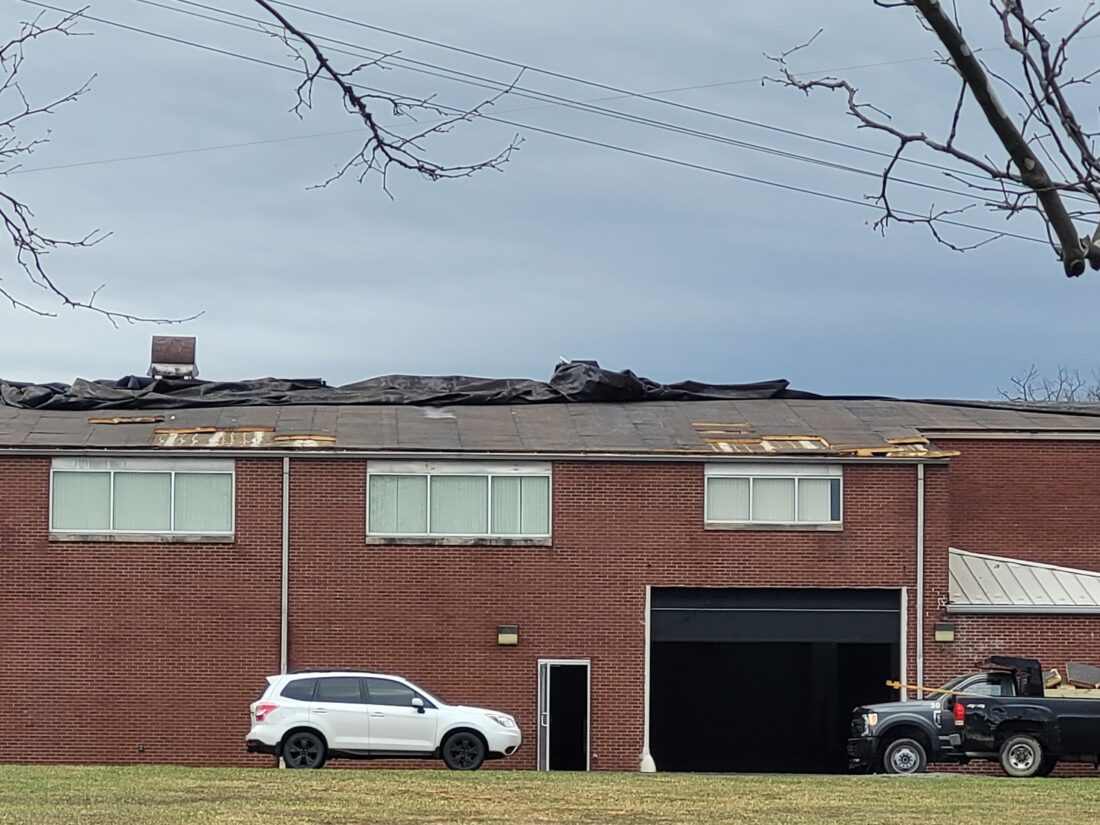 “The older section of roof at the Phil Gaynor Center blew off in the storm. There is debris scattered around the building,” Elkins City Clerk Sutton Stokes told The Inter-Mountain Sunday afternoon.