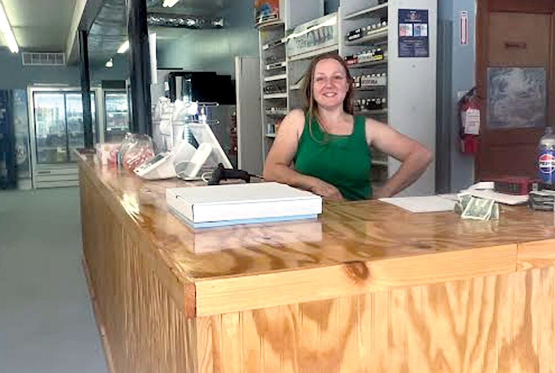 The Inter-Mountain photo by Edgar Kelley Wilma Anderson stands at the counter of a new store Tuesday which has opened in downtown Coalton. The Coalton Country Market is located on Broadway Avenue. The store is owned by Anderson and Shirley Chisolm.