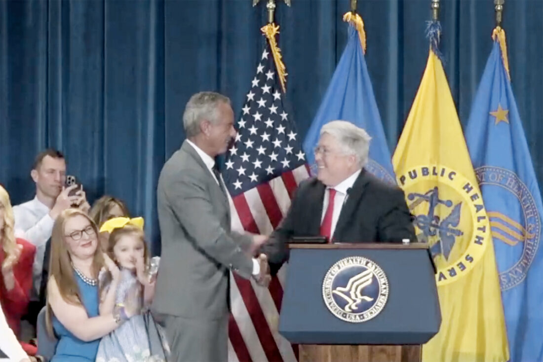 Photo Courtesy/HHS Gov. Patrick Morrisey introduced U.S. Department of Health and Human Services Secretary Robert F. Kennedy Jr. on Tuesday at a press conference announcing the phase-out of several artificial food dyes.