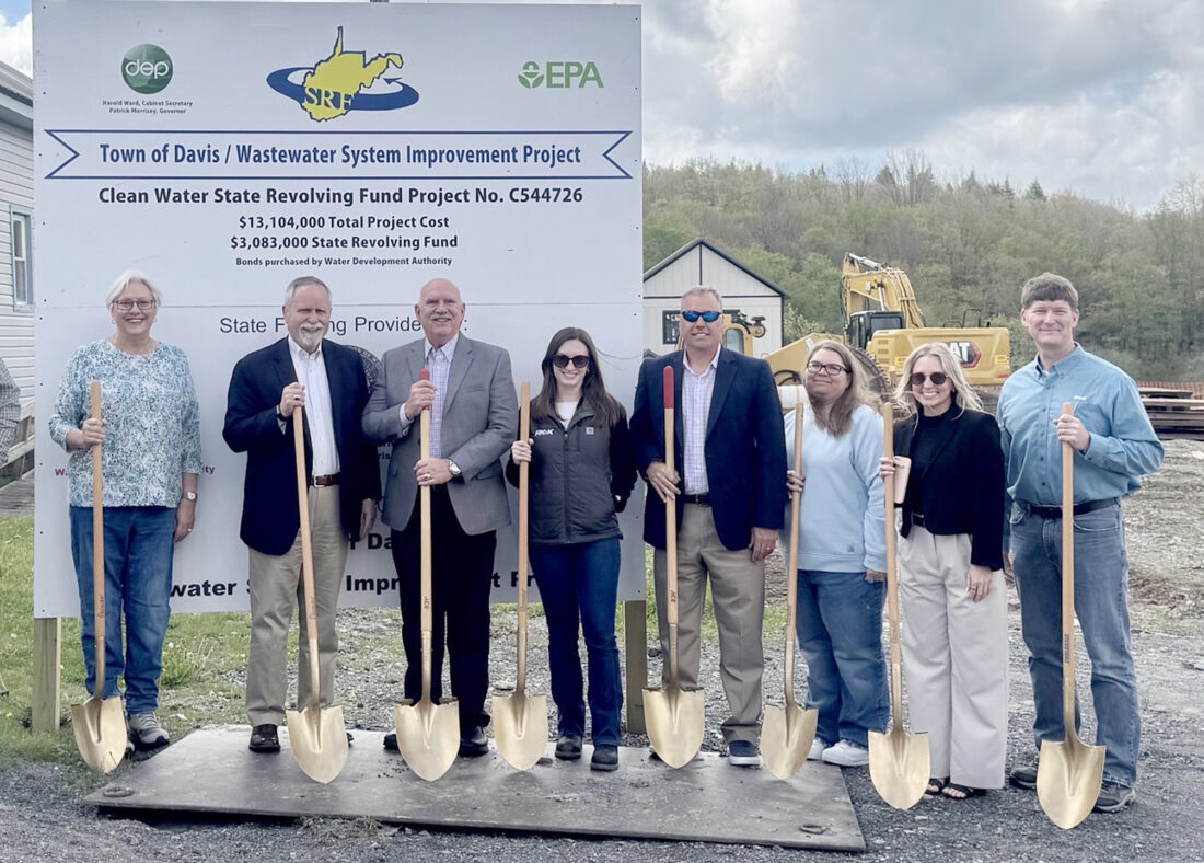 Submitted photo The Town of Davis broke ground on a pair of infrastructure projects Monday. Taking part in the ground-breaking ceremony were, from left, Mary Anne Tomson, former Congressman David McKinley, Davis Mayor Al Tomson, Rhiannon Dodge, Shane Whitehair, Joni Felton, Lisa Karickhoff and John Cole.