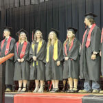 - The nine graduating seniors of the 2025 Class of Harman School face the audience during Tuesday’s commencement ceremony.