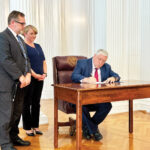 - Gov. Patrick Morrisey signs the paperwork appointing Fayette County Circuit Court Judge Thomas Ewing to the West Virginia Supreme Court of Appeals. Ewing was joined by his wife Mindy.
