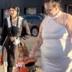 - Revelers dressed as Wednesday from ‘The Addams Family’ and Wilma and Pebbles from ‘The Flintstones.’