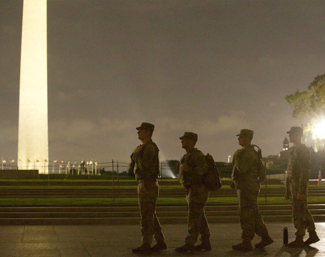 Photo Courtesy/U.S. Army National Guard U.S. Soldiers with the West Virginia National Guard patrol the National Mall in Washington, D.C., on Aug. 20.