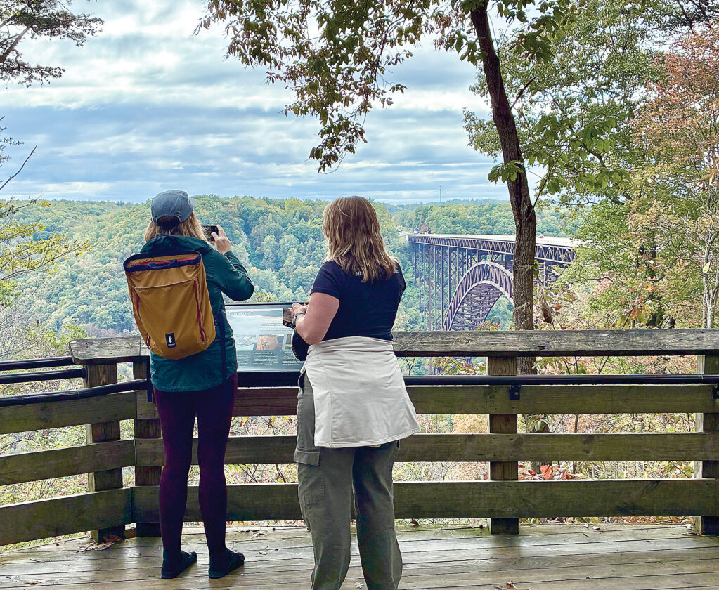 Photo by Steven Allen Adams Tourists view the New River Gorge Bridge on Saturday from an overlook at the visitors center for the New River Gorge National Park and Preserve near Fayetteville.