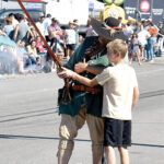 The primitive campers took part in the Grand Feature Parade, firing off their muskets. Above, one of the campers lets a child fire the gun.