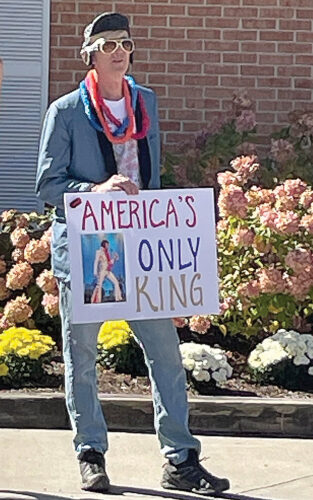 One protester, above left, dressed as Elvis ‘the King’ Presley.