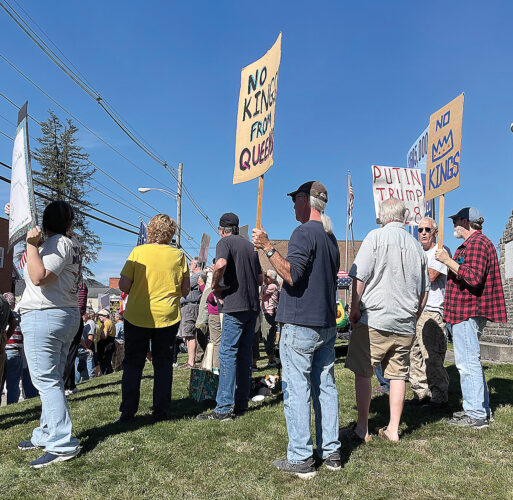 Submitted photos Close to 450 citizens gathered outside the Randolph County Courthouse Saturday for the No Kings 2 rally. Local residents filled the sidewalk in front of the courthouse with signs.
