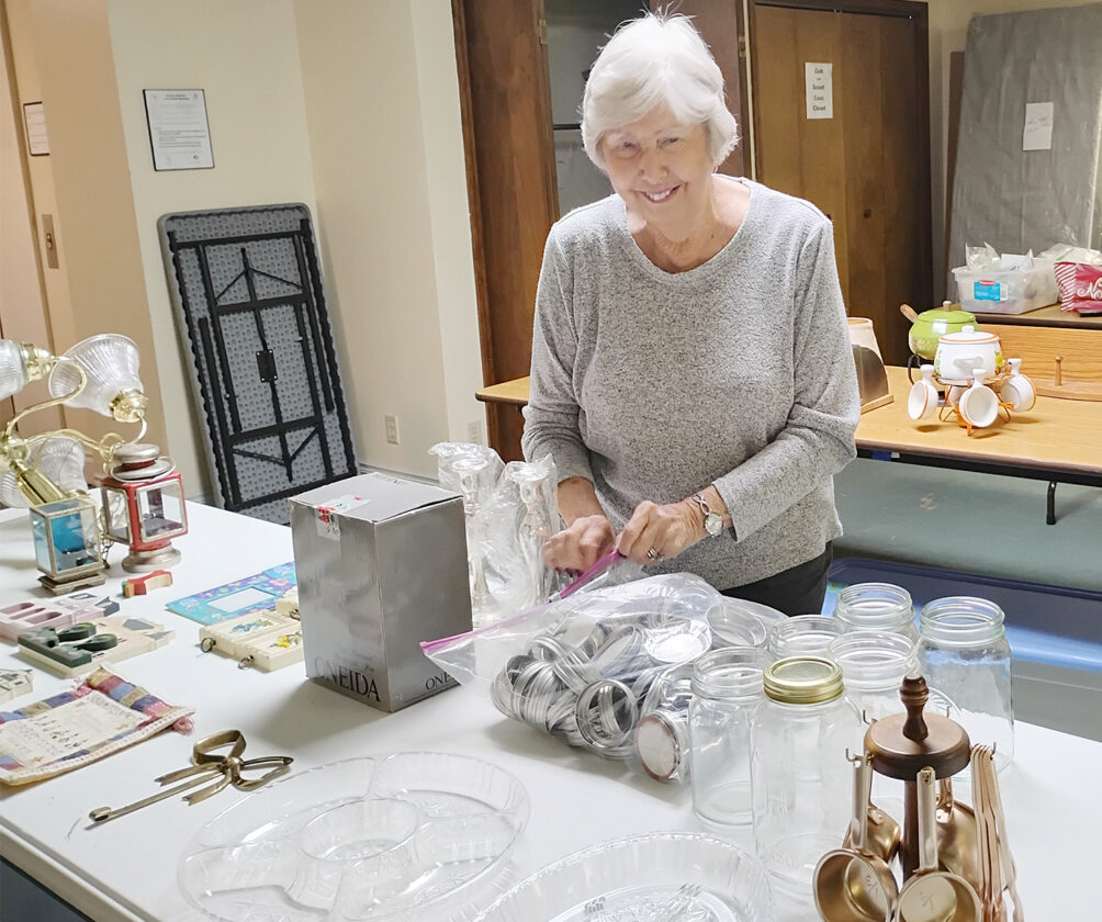 Submitted photo Carolyn Gola prepares canning items to sell, as the United Women on Faith of Elkins First United Methodist Church, on 315 Kerens Ave., will host a Country Store Sale Friday, from 9 a.m. -2 p.m., and Saturday, from 9 a.m. until noon, in the church basement, with a variety of Christmas items and much more. The buyer may name their price.