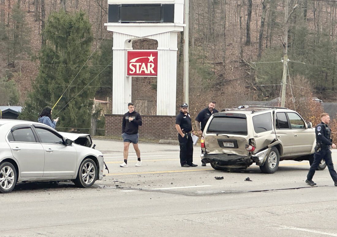 The Inter-Mountain Photo by Taylor McKinnie The Elkins City Police Department, the Elkins Fire Department and Randolph County EMS responded to a two-vehicle accident on the Beverly Five Lane Thursday afternoon. One person was transported in an ambulance.