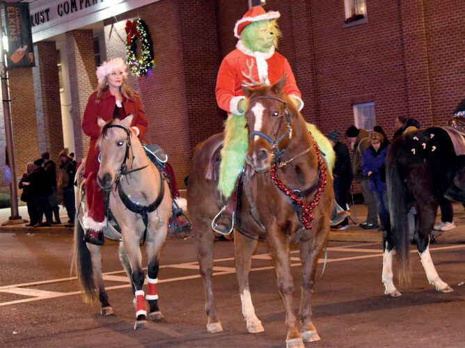 The Grinch rode through town on horseback as part of the event’s holiday offerings.