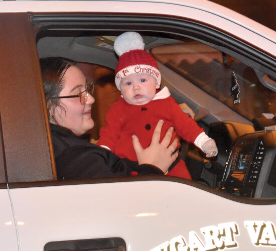 A baby celebrates their first Christmas with the Tygart Valley Fire Company Co. 41 during the ‘Jingle All the Way’ Christmas Parade on Dec. 5.